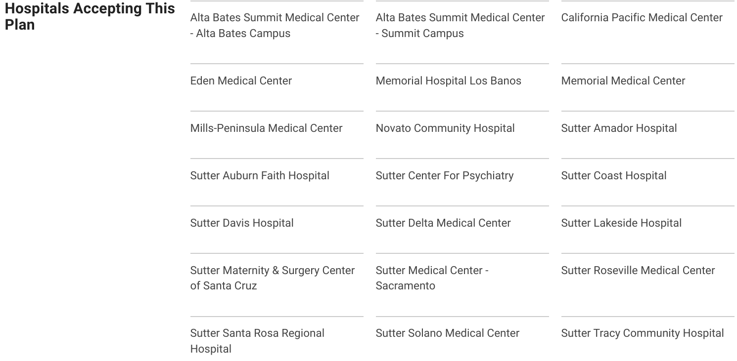 First, Alignment has a set of plans that can work with Sutter health (make sure to run your updated quote here in case of changes):